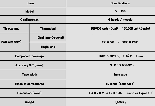 Hitachi Mounter SIGMA F8, HITACHI Mounter Features: